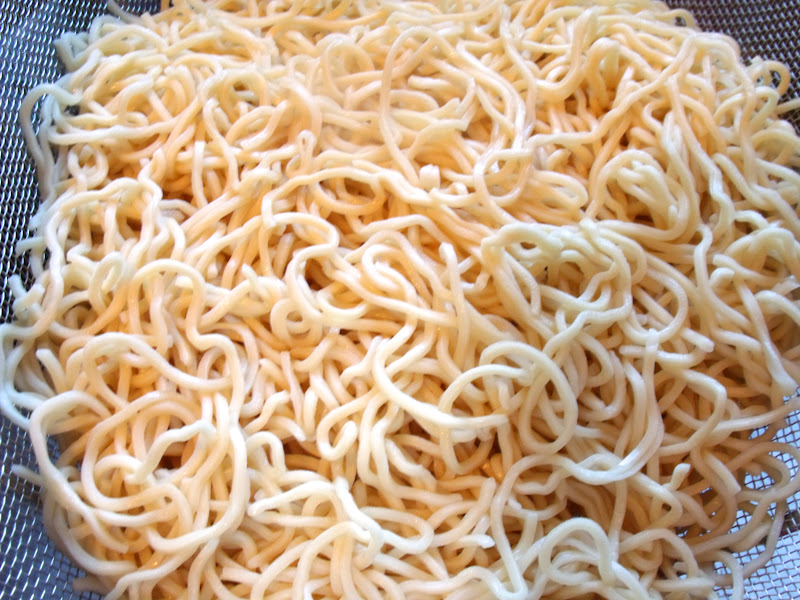 1. Boil the egg noodles until tender, strain and rinse under cold water